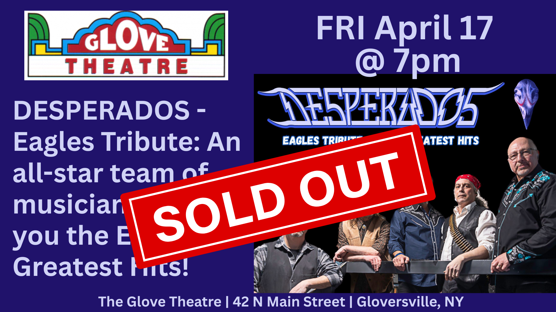 The Glove Theatre proudly welcomes DESPERADOS - A Tribute to The Eagles!