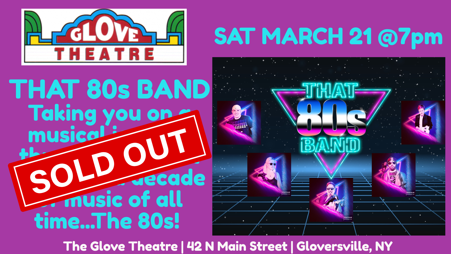 No way.....WAY! The totally RAD rumors are true! That 80s Band is set to land their time machine at the historic Glove Theater! They will take you on a musical journey through the most celebrated decade of music of all time...The 80s!