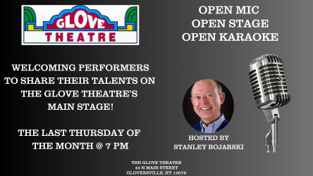 Got talent? Want to sing some karaoke in a big room? Or, maybe you just want to bask in the talent of others? The Glove Theatre's monthly Open Mic is the place for you!